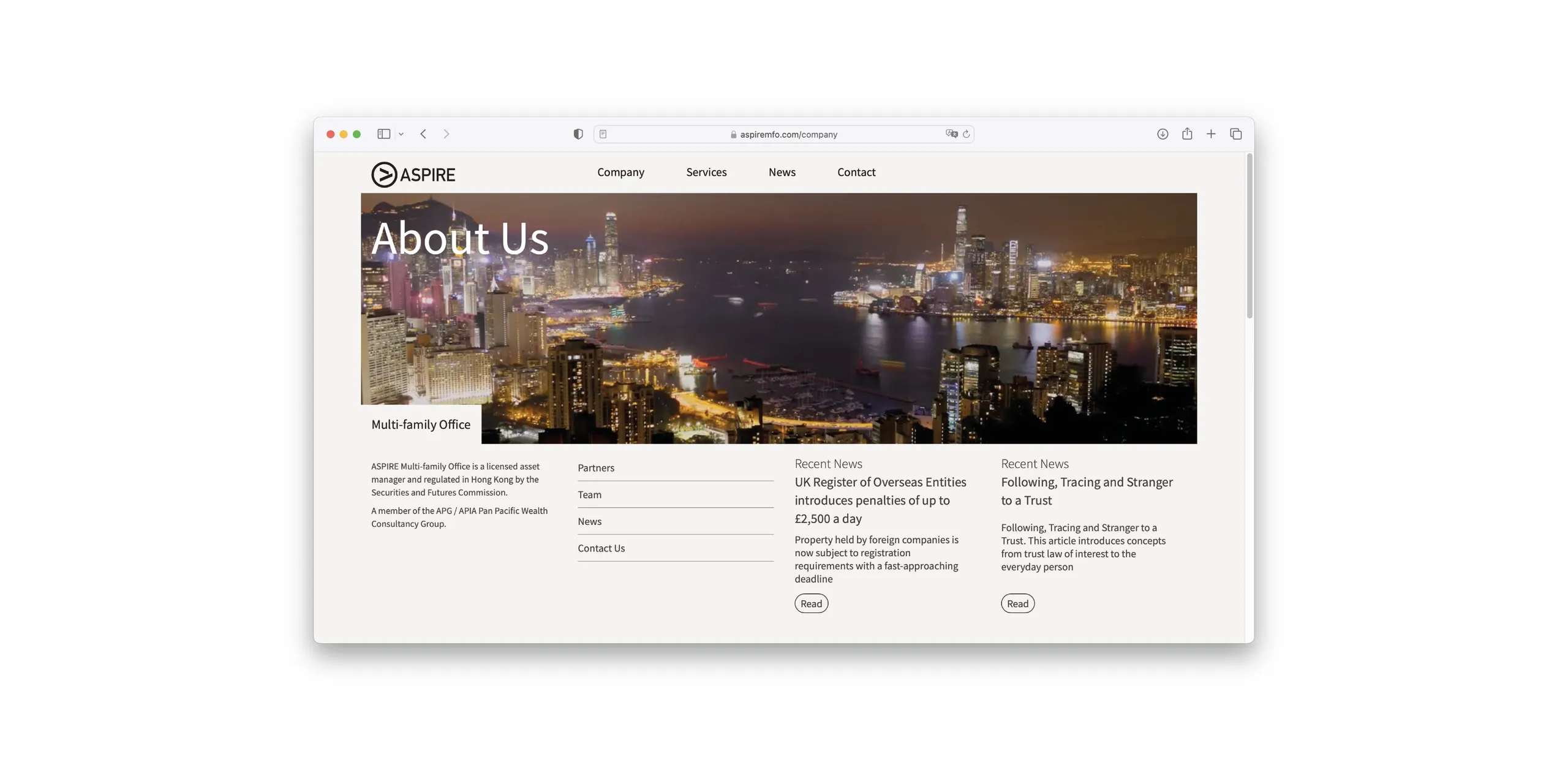 As a new member of the Asia Pacific group Aspire focuses on wealth management and family office operations. The new identity needed to covey solidity and reliability, but also the capacity for dynamic thinking and a willingness to explore less conventional investment options. The rondel logo, enclosing two converging lines to create an arrow shape, is also suggestive the letter ‘A’ and a bird taking flight.